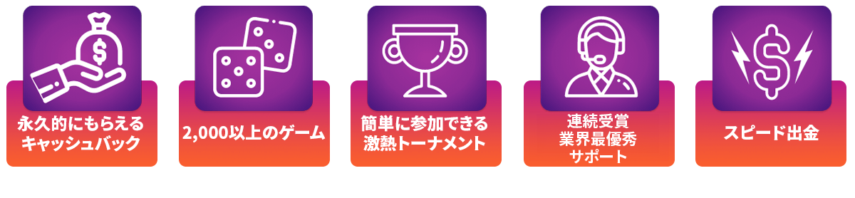 •当該出金条件がクリアされなかった場合、当該ボーナスを獲得してから24時間後に当該ボーナス額、また、当該ボーナスを使用して勝利した該当金額は失効となります。